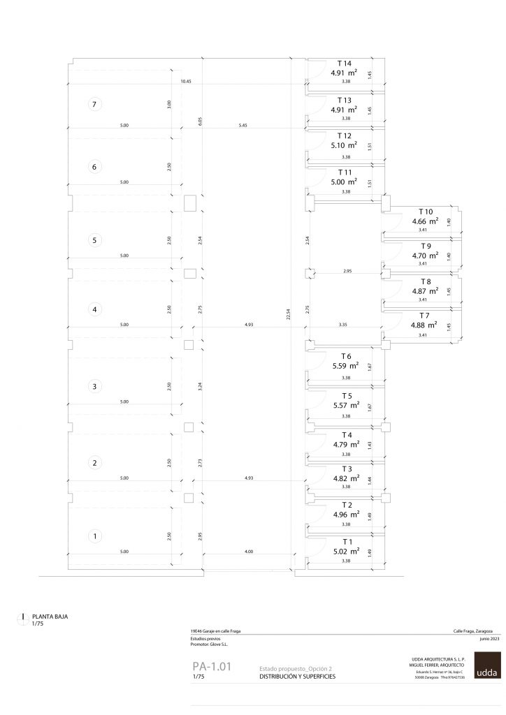 Proyecto de rehabilitación y cambio de uso de local comercial a garajes y trasteros, en la Calle Fraga nº 22 de Zaragoza.