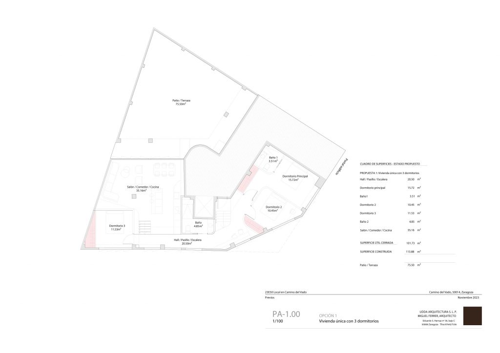 Proyecto de rehabilitación y cambio de uso de un local comercial a una espectacular vivienda en la Pilar Gascón 1, esquina Camino del Vado, de Zaragoza.