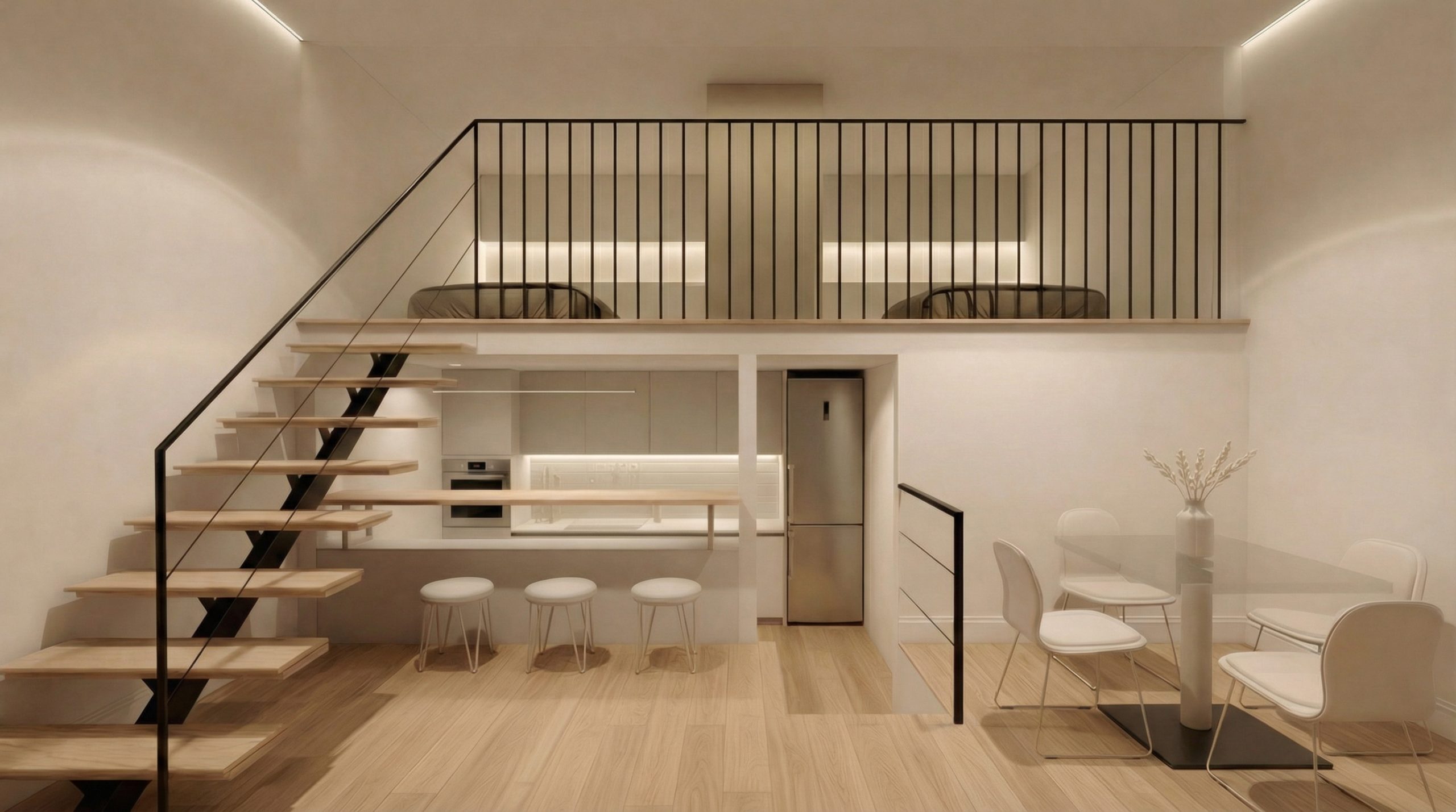 Un concepto de vivienda inspirado en los lofts nórdicos, donde el diseño y la funcionalidad conviven con una estética cálida y minimalista.