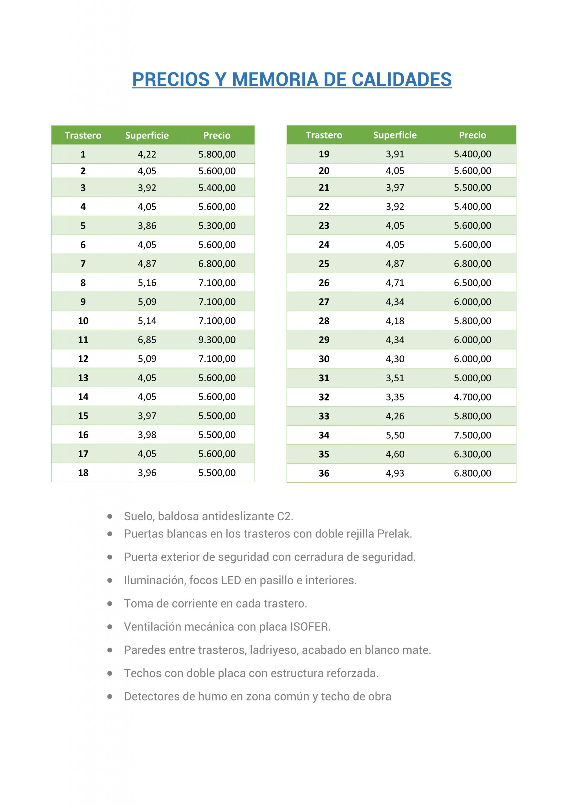 El proyecto consta de 36 trasteros, con superficies que van desde los 3,35 m2 a los 6,85 m2.
