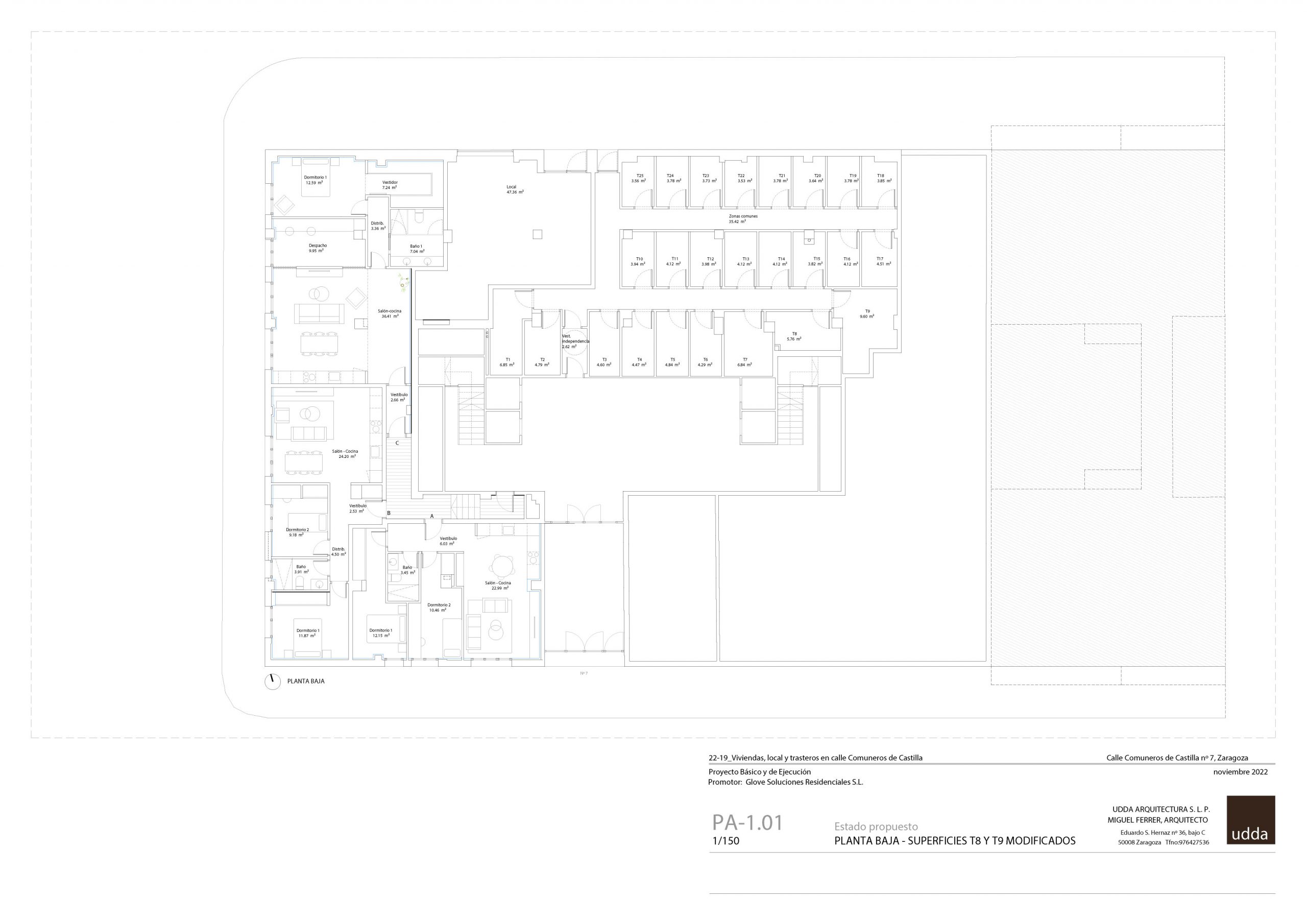 El proyecto consta de 25 trasteros, con superficies que van desde los 3,64 m2 a los 9,64 m2. La zona de trasteros tendrá dos entradas, una desde el zaguán de la comunidad de Comuneros de Castilla 7 y la otra desde la Avenida Echegaray y Caballero.