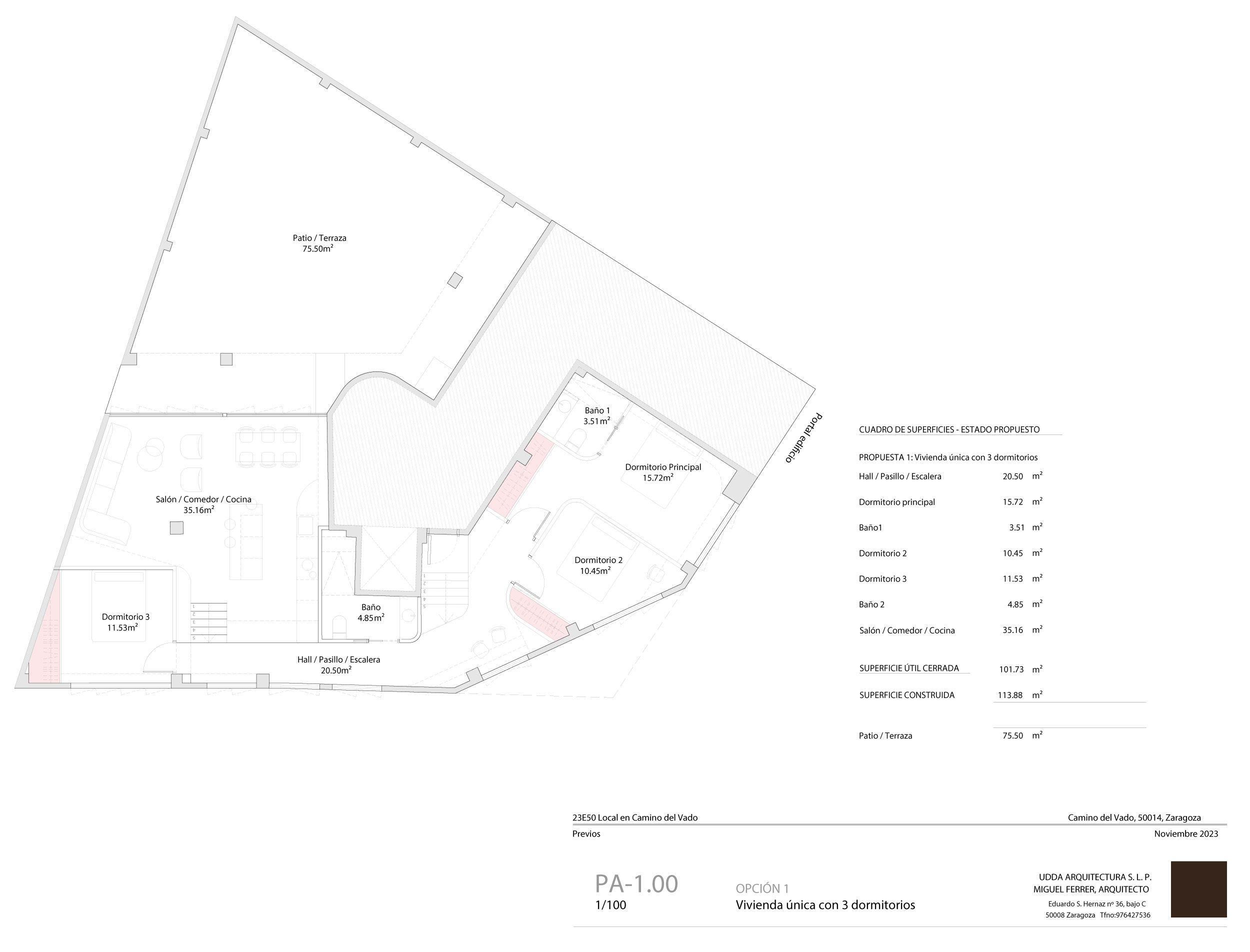 Proyecto de rehabilitación y cambio de uso de un local comercial a una espectacular vivienda en la Pilar Gascón 1, esquina Camino del Vado, de Zaragoza.